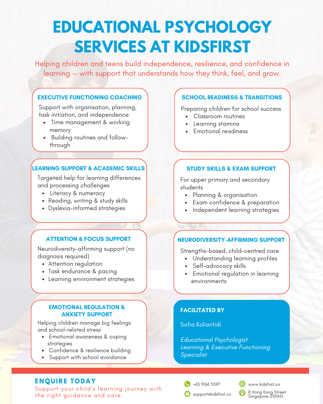📩 Message us to learn more or enquire about upcoming intakes. Call +65 9166 5597 and/or email support@kidsfirst.co